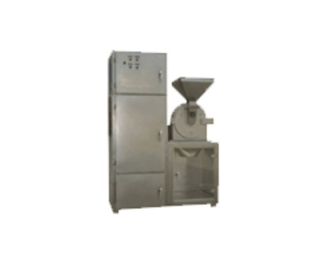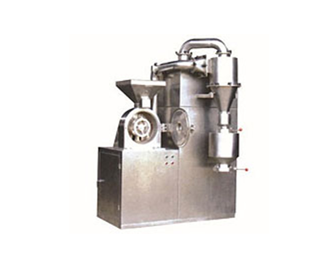 本机组主机、辅机、集管道、电控器定量加料装置为一组。辅机有旋风和脉冲式除尘器、主机内装有离心分级装置,除可完成粉碎外,还具有分级功能,分选式离心剪切,无筛无网,粉状颗粒可任意调节,物料粉碎后,采用负压输送至排阀出口,达到制品要求,该机组是制药、食品、化工工业的理想机械。